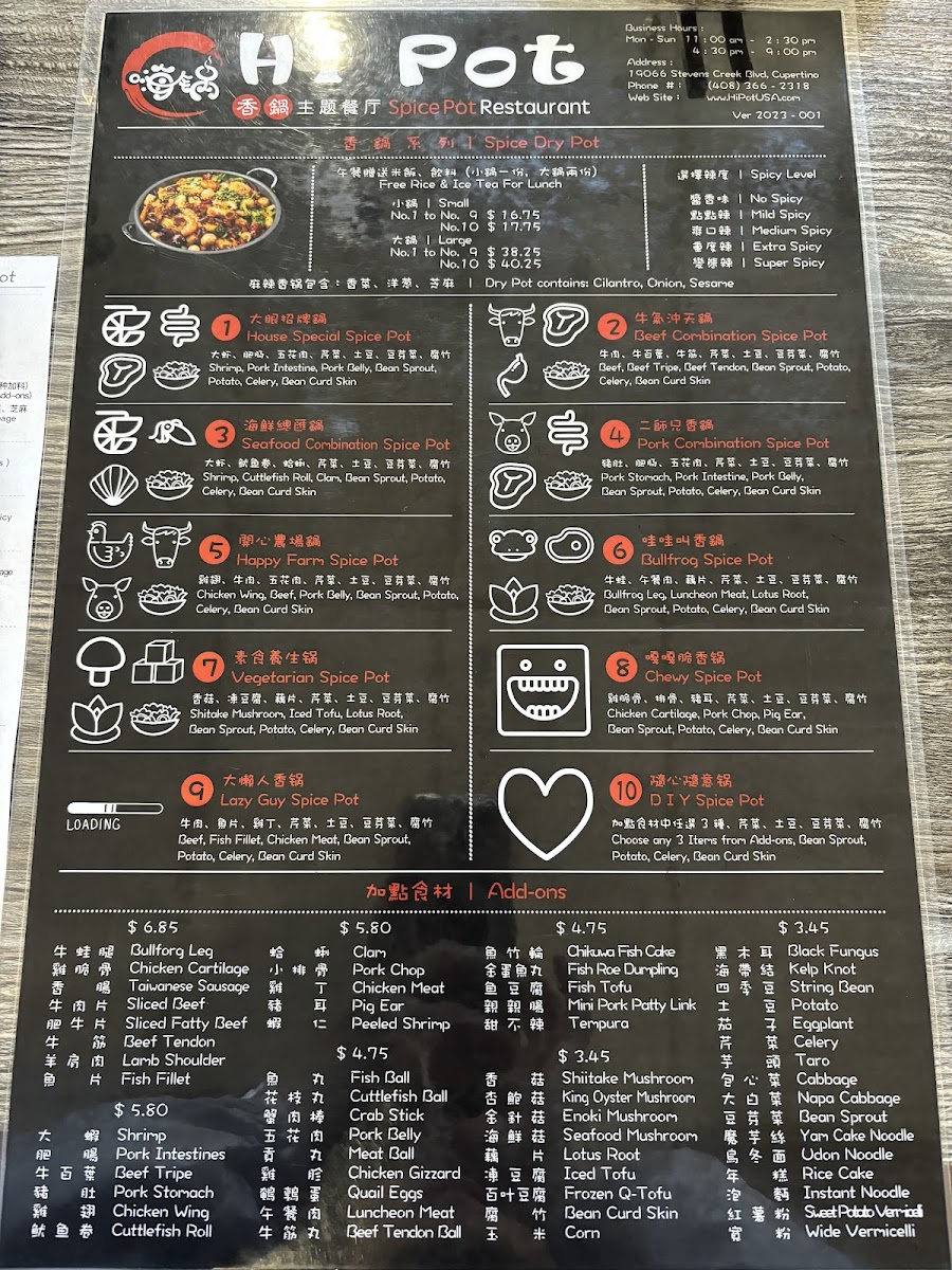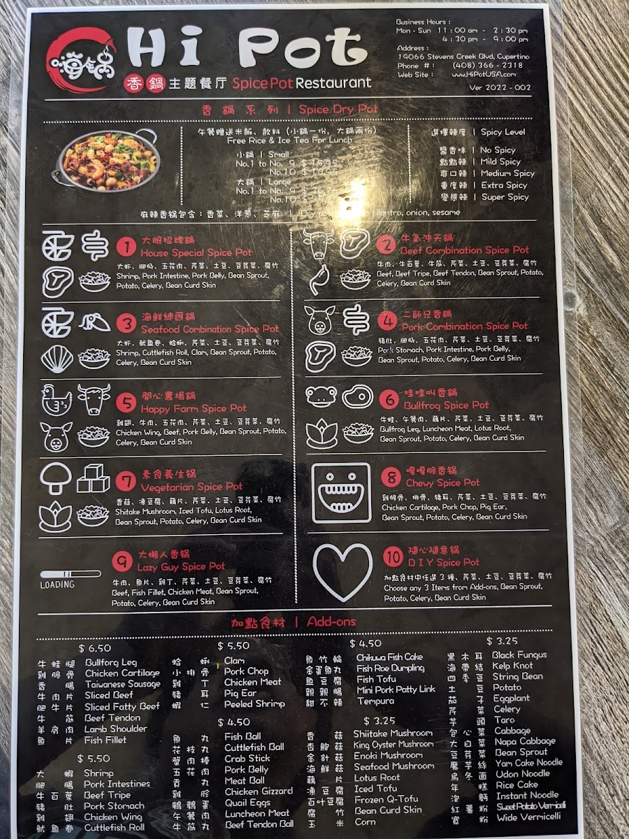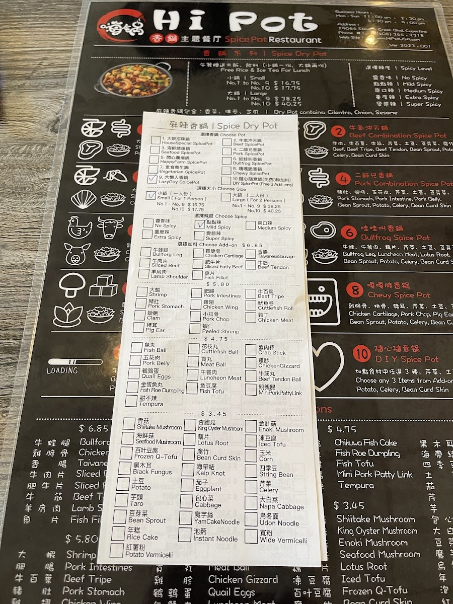 Hi Pot Menu