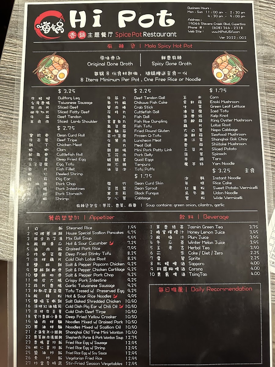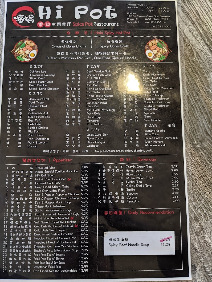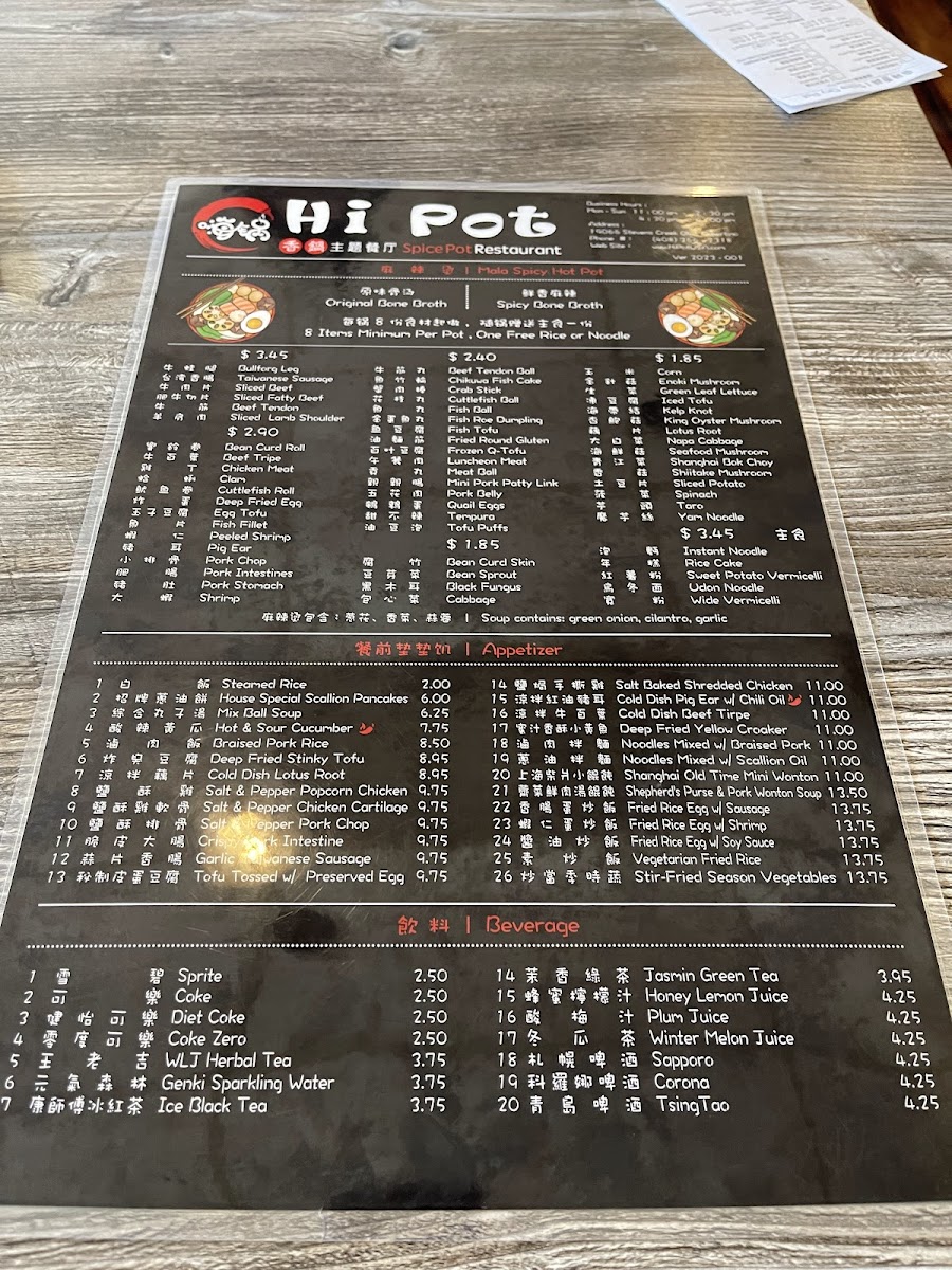 The menu at Hi Pot offers a thoughtfully curated selection centered around authentic Chinese, Mandarin, Shanghainese, Sichuan, and Taiwanese flavors. It features comforting hot pots and spice pots that invite sharing and leisurely dining, ideal for gatherings where meals become a warm, social experience. The broth-based hot pots, available in both spicy and mild options, allow guests to customize their ingredients, fostering a feeling of connection around the table.